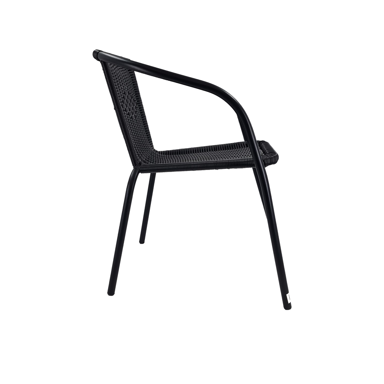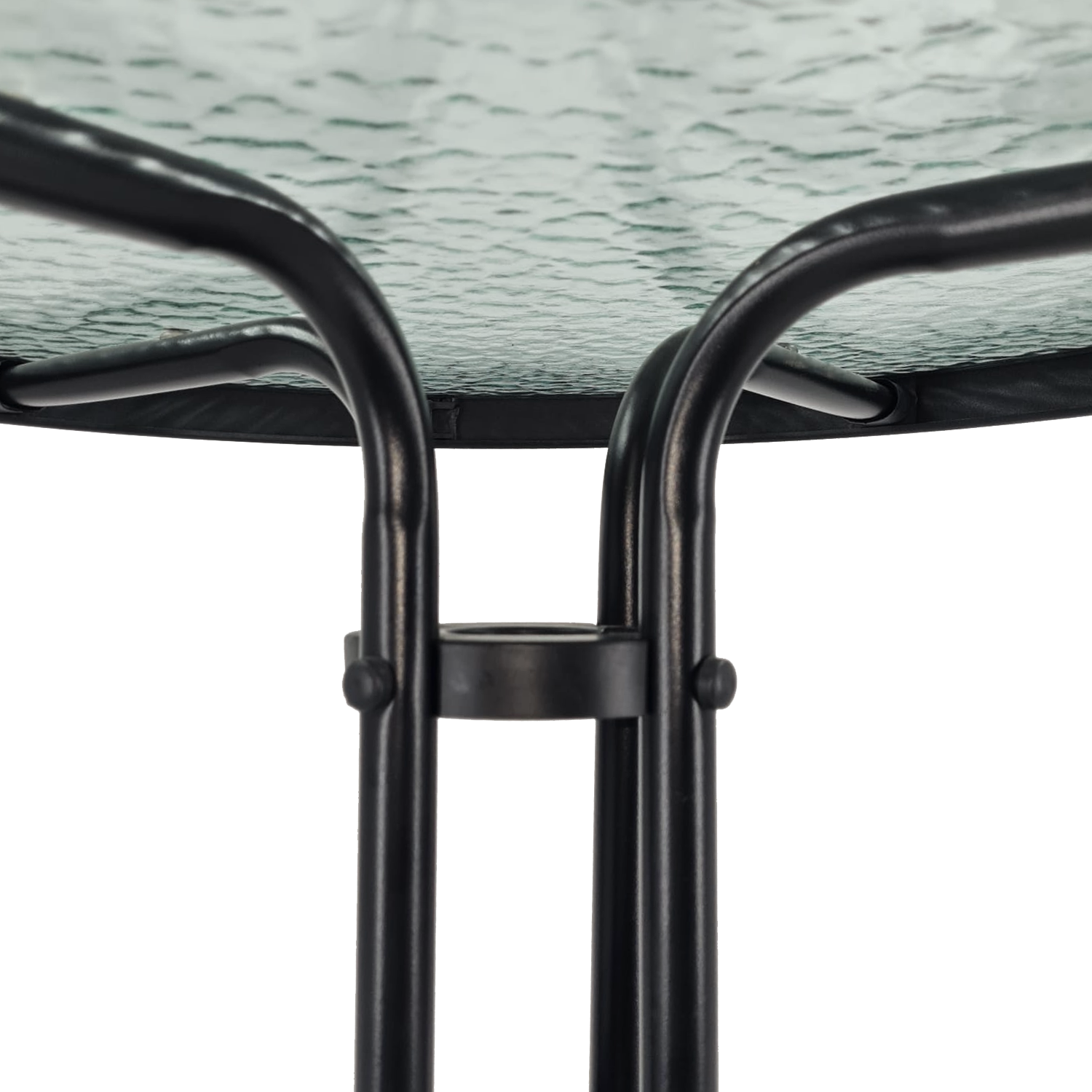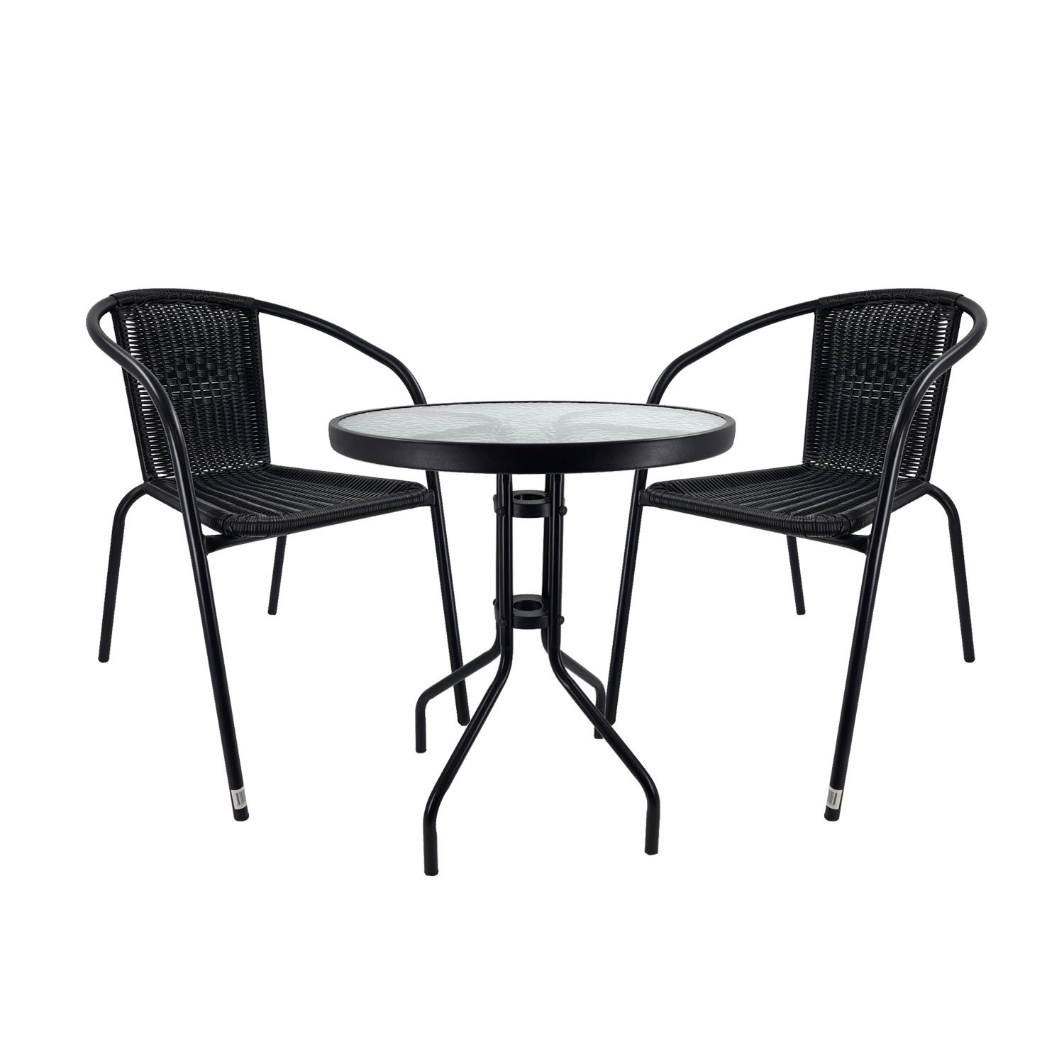 Mesa: Redonda de acero con pintura epoxi, vidrio templado y esmerilado de 5 mm de espesor Dimensiones: 60 cm. de diámetro Sillas: Resistencia: 115 kg por silla, Dimensiones de la silla: 58 x 51.5 x 74 cm |